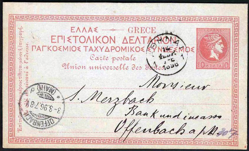 Keywords: Carte-postale.jpg Postcard from Athens to Offenbach/Germany Καρτ οστάλ α ό την Αθήνα στο Όφενμ αχ της Γερμανίας Transferred from http //el wikipedia org el wikipedia; transferred to Commons by User MARKELLOS using http //tools wikimedia de/~magnus/commonshelper php CommonsHelper 1883 design c 1895 print Unknown The Hermes head design originally in 1861 by André Désiré Barre 1818-1878 This image is in the public domain PD-Art Original upload log page el wikipedia Carte-postale jpg 2007-03-05 10 07 Christos Vittoratos 1178714 740505 bytes <nowiki>Copyright free Postcard from Athens to Offenbach/Germany </nowiki> Postal stationery of Greece Postcards of Greece Large Hermes head stamps |