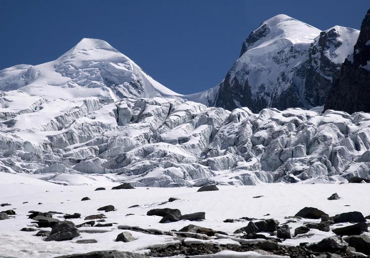 Keywords: Castor Pollux.jpg en Castor 4223 metres and Pollux 4092 metres Grenz glacier in the foreground Own Alagna 2006-10-22 Castor and Pollux peaks Grenzgletscher Snow in Switzerland