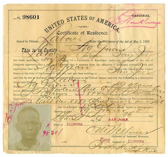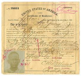 Keywords: people map text writing drawing sketch cartoon Repository: California Historical Society Digital object ID: MS 3642.013.jpg Call number: MS 3642 Collection: Certificates of residence for Chinese laborers, 1894-1897 Date: 1894 March 26 Preferred citation: Certificate of residence for Ng Gwan, Certificates of residence for Chinese laborers, MS 3642, courtesy, California Historical Society, MS 3642.013.jpg. Subjects: California--Emigration and immigration--History--19th century. Chinese Americans--California--History--19th century. Chinese--California--History--19th century. Identification cards. Online finding aid: www.oac.cdlib.org/findaid/ark:/13030/kt858038qp/ Repository: California Historical Society Digital object ID: MS 3642.013.jpg Call number: MS 3642 Collection: Certificates of residence for Chinese laborers, 1894-1897 Date: 1894 March 26 Preferred citation: Certificate of residence for Ng Gwan, Certificates of residence for Chinese laborers, MS 3642, courtesy, California Historical Society, MS 3642.013.jpg. Subjects: California--Emigration and immigration--History--19th century. Chinese Americans--California--History--19th century. Chinese--California--History--19th century. Identification cards. Online finding aid: www.oac.cdlib.org/findaid/ark:/13030/kt858038qp/ |