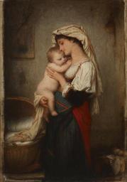 Keywords: Charles François Jalabert - The Awakening - Walters 37106.jpg This painting once believed to be a reduced autograph replica a copy by the original artist after the prime Salon version exhibited in 1872 is now known to be a preparatory sketch dated 1863 Jalabert was a devoted student of Paul Delaroche working with him in Paris and for three years in Italy Delaroche's mentoring of Jalabert gained him access to an elite circle of artists including Géricault Delacroix and Jean-Léon Gérôme Delaroche encouraged Jalabert to exhibit at the Salon as well to compete for the coveted Prix de Rome Faithful like his teacher to the beautiful forms of antiquity and its revival during the Renaissance Jalabert chose to specialize in scenes of everyday life with the anecdotal appeal of this tender rendition of mother and child After he first exhibited a work at the Salon of 1847 Jalabert was presented by Gérôme to the art dealer Adophe Goupil Goupils's accounting books record this sketch as having been sold to William Walters for 2 400 francs on May 9 1864 supporting the earlier date recently discovered by Walters' conservators while cleaning the painting 1863 Oil on canvas cm 33 1 23 3 accession number 37 106 13965 Adolphe Goupil Paris date and mode of acquisition unknown William T Walters Baltimore May 9 1864 by purchase Henry Walters city Baltimore Walters Art Museum Henry Walters Acquired by William T Walters 1864 Signature At upper right Ch Jalabert; Date at upper right 63; Number On label on back no 112 place of origin France Walters Art Museum license 2D Charles Jalabert French paintings in the Walters Art Museum 1860s paintings from France 1863 paintings |
