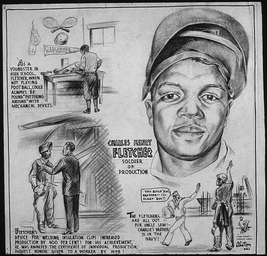 Keywords: Charles Henry Fletcher by Charles Alston.jpg en CHARLES HENRY FLECTCHER - SOLDIER OF PRODUCTION 1943 by Charles Alston http //media nara gov/media/images/3/2/03-0141a jpg Creator Charles Alston 1943 PD-USGov Caricatures of men Charles Alston World War II propaganda Workers in propaganda Drawings of African Americans |