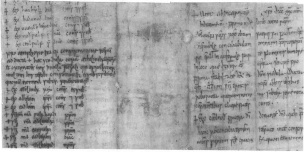 Keywords: Charter of King Æthelwulf of Wessex, 839 (British Library, Cotton Augustus ii. 20 dorse) - detail.jpg en Charter of King Æthelwulf of Wessex 839 British Library Cotton Augustus ii 20 dorse - detail part of the Wilton endorsement left and part of the Astran endorsement right 839 Crick 1997 The case for a West Saxon minuscule author other versions PD-Art 9th-century Anglo-Saxon charters 839 works 9th-century documents West Saxon minuscule Charters of King Æthelwulf of Wessex |