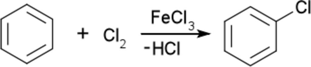 Keywords: Chloracia.png en Chloration of benzene sk Chlorácia benzénu 2012-04-10 own PeetPb cc-zero Uploaded with UploadWizard Chlorination reactions Reactions of benzene Chlorobenzene
