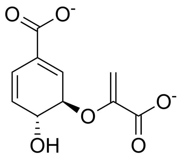 Keywords: Chorismate.svg Chemical structure of chorismate dianion of chorismic acid Own 14 57 22 July 2011 UTC Ed Edgar181 Chorismic acid Carboxylate ions