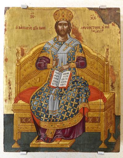 Keywords: Christ Great Hierophant by brother Nicholas (17th c.).jpg Ο Χριστός έγας Αρχιερεύς 17ος αιώνας 36x44 5εκ Ιερέας ικόλαος Κ Ο ΒΑCΙΛΕΥC ΤΩ ΒΑCΙΛΕΥΟ ΤΩ Κ αι ΕΓΑC ΑΡΧ ιερεύς ΧΕΙΡ ΙΚΟΛΑΟΥ Κ ΙΕΡΕΩC ΔΕΗCΙC ΤΗC ΔΟΥΛΗC TOY ΘEOY EΛENHC THC ΤΕ ΕΤΖΕ ΑC Ο Χριστός με ατριαρχικό σάκκο και ωμοφόριο σαν αρχιερέας αλλά και με αυτοκρατορικό στέμμα και λώρο σαν αυτοκράτορας κάθεται σε μεγάλο θρόνο έχει μ ροστά του ανοιχτό ευαγγέλιο ου το συγκρατεί με το αριστερό του χέρι και ευλογεί με το δεξί Η εικονογραφία της εικόνας αυτής ακολουθεί τον τύ ο ου ανα αράγεται στην εικόνα αρ 22 του ουσείου http //eib xanthi ilsp gr/gr/icons asp cursort iconTitle selectFieldValue vpage 3 century 17 Priest Nicholas PD-old Files uploaded by Shakko from various sources Christ Great Hierophant 17th-century icons of Greece |