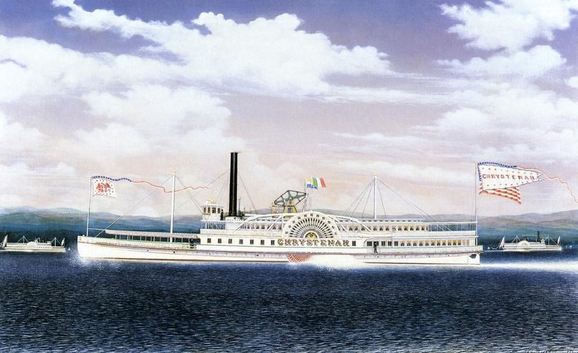 Keywords: Chrystenah (steamboat).jpg en Chrystenah steamboat oil on canvas by James Bard Also depicted in background are 1 on left ahead of bow the steamboat Peter G Coffin; and 2 on right astern the steamboat Isaac P Smith http //www the-athenaeum org/ The Athenaeum org Creator James Bard 1867 PD-old-100 Original as of 1997 in a private collection in New Jersey Reproduced in Mariner's Museum and Peluso Anthony J Jr The Bard Brothers -- Painting America under Steam and Sail Abrams New York 1997 ISBN 0-8109-1240-6 In particular this book reproduces larger images of the background vessels Peter G Coffin and Isaac P Smith PD-old-100 James Bard 1861-1870 works Chrystenah ship 1866 Images from the-athenaeum org |