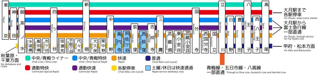 Keywords: Chuo Sobu Line service.svg 中央線 快 及び中央線各駅 車の 車駅表 File Chuoline rapid svgを参 に 梅線の表をなくし各駅 車を昼間運用(総武線タイプ)に また修正も柔軟に行えるようにしました Chūō Line Rapid and Chūō Kankō Line Own User Lusheeta 2009-10-10 File Chuoline rapid svg Chūō Rapid Line Chūō-Sōbu Line Railway maps of JR East |