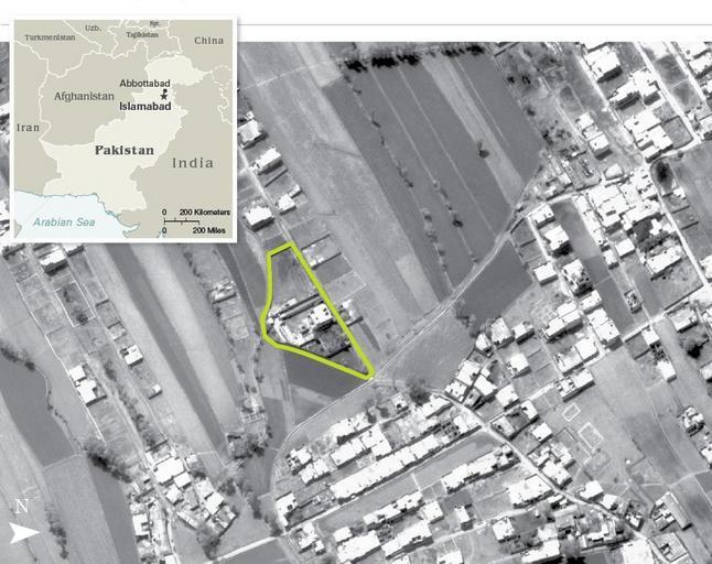 Keywords: CIA aerial view Osama bin Laden compound Abbottabad.jpg en Aerial view of Osama bin Laden's compound in the pakistani city of Abbottabad made by the CIA Vista aerea del complesso di Osama bin Laden nella città pakistana di Abbottabad realizzata dalla CIA http //www spiegel de/fotostrecke/fotostrecke-67495-5 html<br/>http //www defense gov/DODCMSShare/briefingslide/359/110502-D-6570C-001 pdf PD-USGov-CIA 2011 Geographical orientation North is to the right PD-USGov Aerial photographs of Pakistan Compound of Osama bin Laden in Abbottabad |
