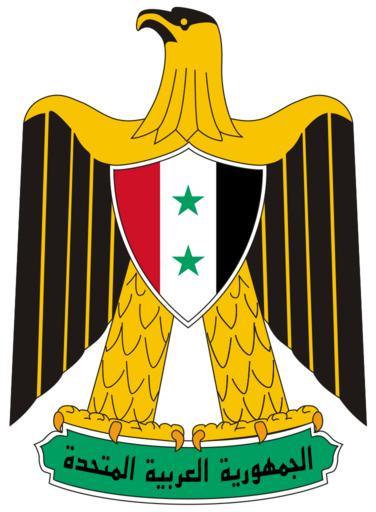 Keywords: Coat of arms of United Arab Republic (Syria 1958-61, Egypt 1958-1971).svg Coat of arms of the United Arab Republic Egypt and Syria 1958-1961 Egypt 1958-1971 -- standard pan-Arab Eagle of Saladin with shield of the tricolor of national flag holding a scroll with the words al-Jumhuriya al-`Arabiya al-Muttaħida symbol found in The International Flag Book in Color by Christian Fogd Pedersen 1971 etc This image based on Image COA of Iraq 1965 svg Original by User Tonyjeff based on national symbol with the help of User Omar86 User Kafka1 and User AnonMoos Modified by User R-41 for 1965 Iraqi COA further modified by User AnonMoos Insignia v United Arab Republic Historical coats of arms of Egypt SVG coats of arms of Egypt Historical coats of arms of Syria Eagle of Saladin 2 five rays vert in heraldry 1958 in Egypt Egyptian United Arab Republic referendum 1958 |