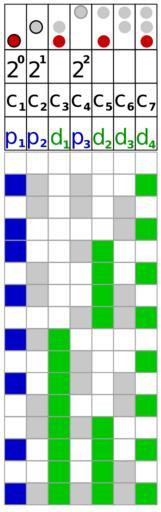 Keywords: Code Hamming 7Bit 05.svg binary code; Hamming-Code Own 2007-11 RosarioVanTulpe Hamming codes