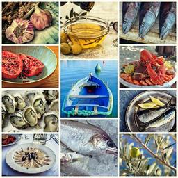 Keywords: collage fish seafood food eat cook mediterranean cuisine fishing shrimp mediteran nutrition south maritime olive oil pleasure still life gourmet frisch kitchen ingredient appetizing mediterranean food-photography enjoy healthy