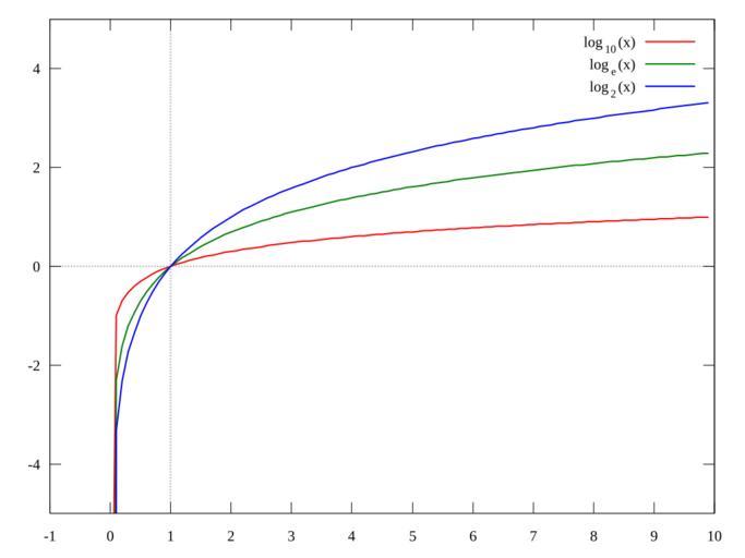 Keywords: Common Logarithms.svg Graph showing base 2 e and 10 logarithms Kuvaaja 2 e ja 10-kantaisista logaritmeista Graf över logaritmer med baserna 2 e och 10 Own 2007-08-07 Pafcu Unidentified graphs line charts Logarithm