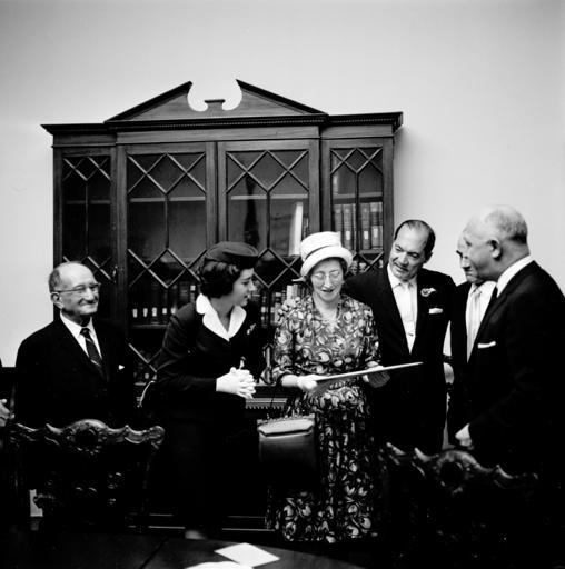 Keywords: u.s. national archives usnationalarchives jfk presidential library jfkpresidentiallibrary blackandwhite people monochrome black and white Original Caption: Congressman Victor L. Anfuso (New York) with Visitors in the Fish Room of the White House We are looking for your help in identifying unknown people in our White House Photographs collection. If you have any information about this photograph, please post a comment, including any relevant sources, for the catalogers at the John F. Kennedy Presidential Library. Thank you! Local Identifier: JFKWHP-ST-125-1-61 Created By: President (1961-1963 : Kennedy). Office of the Naval Aide to the President. (1961 - 1963) From: President (1963-1969 : Johnson). White House Photograph Office. (1963 - 1969) Contact: John F. Kennedy Library (LP-JFK), Columbia Point Boston, MA 02125-3398 Phone: 617-514-1600 Fax: 617-514-1652 Email: kennedy.library@nara.gov Production Dates: 5/24/1961 Scope and Content Note: TThis is a photograph of Congressman Victor L. Anfuso of New York (fourth from left) with five unidentified visitors, Fish Room (Conference Room), White House, Washington, D.C. Persistent URL: JFK Library URL: www.jfklibrary.org/Asset-Viewer/Archives/JFKWHP-ST-125-1-... Access Restrictions: Unrestricted Use Restrictions: Unrestricted Original Caption: Congressman Victor L. Anfuso (New York) with Visitors in the Fish Room of the White House We are looking for your help in identifying unknown people in our White House Photographs collection. If you have any information about this photograph, please post a comment, including any relevant sources, for the catalogers at the John F. Kennedy Presidential Library. Thank you! Local Identifier: JFKWHP-ST-125-1-61 Created By: President (1961-1963 : Kennedy). Office of the Naval Aide to the President. (1961 - 1963) From: President (1963-1969 : Johnson). White House Photograph Office. (1963 - 1969) Contact: John F. Kennedy Library (LP-JFK), Columbia Point Boston, MA 02125-3398 Phone: 617-514-1600 Fax: 617-514-1652 Email: kennedy.library@nara.gov Production Dates: 5/24/1961 Scope and Content Note: TThis is a photograph of Congressman Victor L. Anfuso of New York (fourth from left) with five unidentified visitors, Fish Room (Conference Room), White House, Washington, D.C. Persistent URL: JFK Library URL: www.jfklibrary.org/Asset-Viewer/Archives/JFKWHP-ST-125-1-... Access Restrictions: Unrestricted Use Restrictions: Unrestricted |