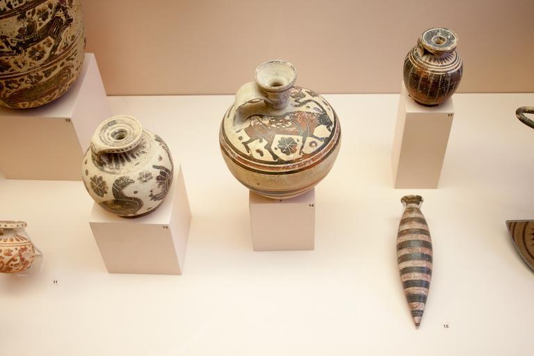 Keywords: Corinthian pottery (720-550 BC).jpg object history credit line accession number Photo by Szilas in the Archaeological Museum of Rhodes Commonist Ancient Greek pottery in the Archaeological Museum of Rhodes Attic red-figure pottery Ancient Greek pottery aryballoi |