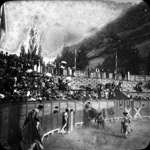 Keywords: blackandwhite monochrome outdoor black and white Fonds Trutat - Photographie ancienne Cote : TRU C 148 Localisation : Fonds ancien Original non communicable Titre : Courses de taureaux : picador, 18 juin 1899 Auteur : Trutat, Eugène Rôle de l’auteur : Photographe Lieu de création : Bagnères-de-Luchon (Haute-Garonne) Date de création : : 1899 Mesures : 10 x 9 cm Mot(s)-clé(s) : -- Tauromachie -- Arènes -- Gradins -- Spectateur -- Torero -- Cheval -- Taureau -- Bagnères-de-Luchon (Haute-Garonne) -- Soupirs, allée des (Bagnères-de-Luchon) -- Pique (France ; vallée) -- Pyrénées (France) -- 19e siècle, 4e quart Médium : Photographies -- Positifs au collodion sur plaque de verre -- Noir et blanc -- Scènes Bibliographie : Frappé (Jean-Bernard). - Autrefois Bagnères de Luchon. Tome I. - Anglet : Atlantica, 2001. - 345 p. ; 15 x 22 cm. - (Autrefois) cf. p. 246-247. Sous Original non communicable URL : numerique.bibliotheque.toulouse.fr/cgi-bin/library?c=phot... Bibliothèque de Toulouse. Domaine public Fonds Trutat - Photographie ancienne Cote : TRU C 148 Localisation : Fonds ancien Original non communicable Titre : Courses de taureaux : picador, 18 juin 1899 Auteur : Trutat, Eugène Rôle de l’auteur : Photographe Lieu de création : Bagnères-de-Luchon (Haute-Garonne) Date de création : : 1899 Mesures : 10 x 9 cm Mot(s)-clé(s) : -- Tauromachie -- Arènes -- Gradins -- Spectateur -- Torero -- Cheval -- Taureau -- Bagnères-de-Luchon (Haute-Garonne) -- Soupirs, allée des (Bagnères-de-Luchon) -- Pique (France ; vallée) -- Pyrénées (France) -- 19e siècle, 4e quart Médium : Photographies -- Positifs au collodion sur plaque de verre -- Noir et blanc -- Scènes Bibliographie : Frappé (Jean-Bernard). - Autrefois Bagnères de Luchon. Tome I. - Anglet : Atlantica, 2001. - 345 p. ; 15 x 22 cm. - (Autrefois) cf. p. 246-247. Sous Original non communicable URL : numerique.bibliotheque.toulouse.fr/cgi-bin/library?c=phot... Bibliothèque de Toulouse. Domaine public |