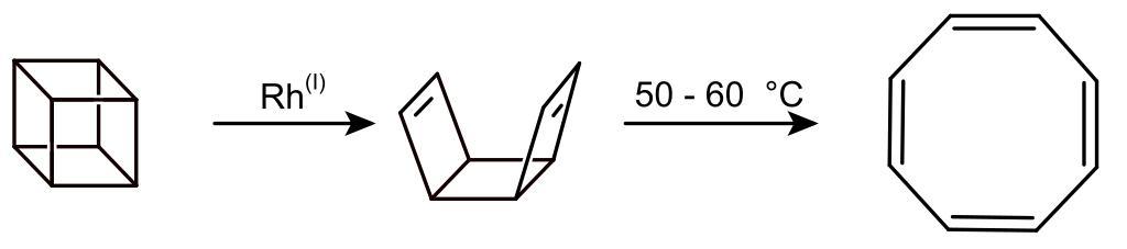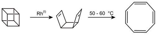 Keywords: Cubane to cyclooctatetraene.svg en Reaction of cubane to cyclooctatetraene de Reaktion von Cuban zum Cyclooctatetraen own Steffen 962 2010-03-31 Cubane