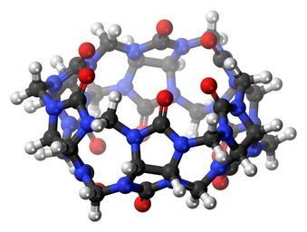 Keywords: Cucurbit(6)uril-(side)-3D-balls.png Ball-and-stick model of the Cucurbit6uril molecule one of the cucurbiturils a group of macrocyclic compounds which have many applications in supramolecular chemistry This image shows the side view Colour code 505050 Carbon C black<br> F0F0F0 Hydrogen H white<br> F51E1E Oxygen O red<br> 3C50FA Nitrogen N blue<br> 2011-06-03 own DS Visualizer Jynto talk Top view ball-and-stick version Top view space-filling version Top view stick version Side view space-filling version Side view stick version cc-zero Cucurbiturils Images by Jynto Ball-and-stick models |