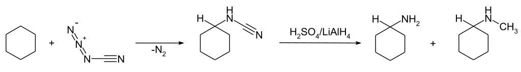 Keywords: Cyanogen azide reaction05.svg en Chemistry of cyanogen azide - reaction with cyclohexane de Chemie des Cyanoazids - Reaktion mit Cyclohexan own Steffen 962 2015-03-18 PD-chem Cyanogen azide Cc-zero
