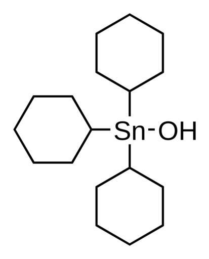 Keywords: Cyhexatin.svg Chemical structure of cyhexatin Selfmade with ChemDraw 2006-10 Calvero PD Organotin compounds Cyclohexyl compounds Hydroxy compounds