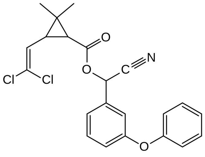 Keywords: Cypermethrin.svg structure of Cypermethrin an insecticide self-made using BKchem 2007-09-15 user Blech Cypermethrin