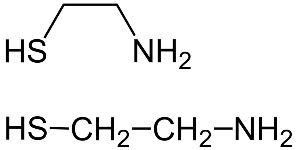 Keywords: Cysteamine formula V.1.svg en Cysteamine_formula de Cysteamin own Jü 2012-05-26 Cysteamine Cc-zero