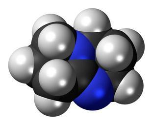 Keywords: DBN-3D-spacefill.png Space-filling model of the 1 5-diazabicyclo 4 3 0 non-5-ene molecule also known as DBN an amidine base used in organic synthesis Colour code 505050 Carbon C black<br> F0F0F0 Hydrogen H white<br> 3C50FA Nitrogen N blue<br> 2011-02-19 own DS Visualizer Jynto talk Ball-and-stick version cc-zero Amidines Azolidines Tetrahydrodiazines Images by Jynto Space-filling models |