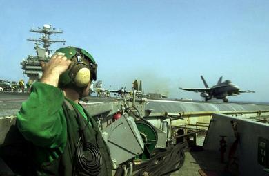 Keywords: Defense.gov News Photo 011007-N-6520M-029.jpg en An F/A-18C Hornet is launched from the aircraft carrier USS Carl Vinson CVN 70 in a strike against al Qaeda terrorist training camps and military installations of the Taliban regime in Afghanistan on Oct 7 2001 The carefully targeted actions are designed to disrupt the use of Afghanistan as a base for terrorist operations and to attack the military capability of the Taliban regime The USS Carl Vinson CVN 70 is operating in the Arabian Sea as part of Operation Enduring Freedom 011007-N-6520M-029 Navy http //www defense gov/photos/newsphoto aspx newsphotoid 3657 2001-10-07 en Petty Officer 1st Class Greg Messier U S Navy PD-USGov-Military-Navy Defense gov news media for October 2001 Import by User Slick-o-bot/Defense gov News Photos Aboard USS Carl Vinson CVN-70 F/A-18C Hornet on flight decks F/A-18 Hornet aircraft carrier landings Aircraft in the War in Afghanistan 2001-present United States Navy in the War in Afghanistan 2001-present War in Afghanistan 2001-present related operations outside of Afghanistan Operation Enduring Freedom USS Carl Vinson CVN-70 |
