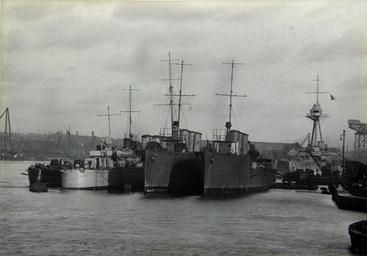 Keywords: ww1 royal navy royalnavy first world war firstworldwar hawthorn leslie hawthornleslie shipbuilding hebburn hms marksman hmsmarksman hms talisman hmstalisman hms termagant hmstermagant destroyer torpedo boat destroyer torpedoboatdestroyer shipyard maritime heritage maritimeheritage industry black and white photograph blackandwhitephotograph digital image digitalimage destroyers moored 5 november 1915 5november1915 hawthorn leslie warships hawthornlesliewarships battle of jutland battleofjutland wartime naval military industrial heritage industrialheritage abstract warships constuction structure deck rail sky cloud grain mark float rope bank buildings mast cylinder flag pole roof wall vessel unusual fascinating majestic outdoor waterfront water black and white HMS Marksman, HMS Talisman and HMS Termagant moored at the Hawthorn Leslie shipyard, Hebburn, 5 November 1915 (TWAM ref. 4471/3). HMS Termagant took part in the Battle of Jutland with the Royal Navy's 13th Destroyer Flotilla. The shipyard of R. & W. Hawthorn Leslie at Hebburn built many fine warships. During the First World War the firm built 2 light cruisers, 3 destroyer leaders and 25 torpedo boat destroyers. The firm also built machinery and boilers for 2 battleships, and a further 3 light cruisers. These and other warships built by Hawthorn Leslie before the War, are remembered in this set. There are remarkable images of warships under construction at Hebburn, as well as fascinating shots of the people who attended the launches. The set also contains majestic views of the ships at sea. The images are not only a testimony to the skill of those who designed and built these ships but also to the courage of those who sailed in them. (Copyright) We're happy for you to share these digital images within the spirit of The Commons. Please cite 'Tyne & Wear Archives & Museums' when reusing. Certain restrictions on high quality reproductions and commercial use of the original physical version apply though; if you're unsure please email archives@twmuseums.org.uk HMS Marksman, HMS Talisman and HMS Termagant moored at the Hawthorn Leslie shipyard, Hebburn, 5 November 1915 (TWAM ref. 4471/3). HMS Termagant took part in the Battle of Jutland with the Royal Navy's 13th Destroyer Flotilla. The shipyard of R. & W. Hawthorn Leslie at Hebburn built many fine warships. During the First World War the firm built 2 light cruisers, 3 destroyer leaders and 25 torpedo boat destroyers. The firm also built machinery and boilers for 2 battleships, and a further 3 light cruisers. These and other warships built by Hawthorn Leslie before the War, are remembered in this set. There are remarkable images of warships under construction at Hebburn, as well as fascinating shots of the people who attended the launches. The set also contains majestic views of the ships at sea. The images are not only a testimony to the skill of those who designed and built these ships but also to the courage of those who sailed in them. (Copyright) We're happy for you to share these digital images within the spirit of The Commons. Please cite 'Tyne & Wear Archives & Museums' when reusing. Certain restrictions on high quality reproductions and commercial use of the original physical version apply though; if you're unsure please email archives@twmuseums.org.uk |