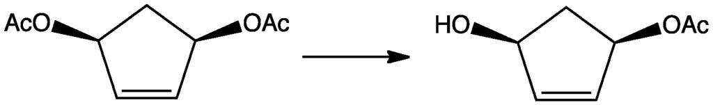 Keywords: DesymDiacetate.png en Example of desymmetrization taken from Organic Syntheses Coll Vol 9 p 487 1998 but redrawn by me own Smokefoot Dec 3 Hydrolysis reactions