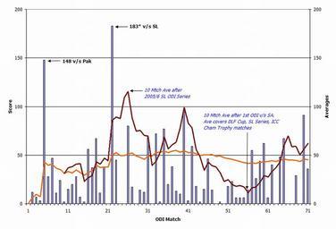 Keywords: Dhoni ODI Graph.jpg One Day International Career Graph of Mahendra Singh Dhoni Orange line indicates progression of career average while the brown line indicates ten most recent innings at that point This graph was generated with Microsoft Excel 2002 using data from http //statserver cricket org/guru sdb player;playerid 7593;class odiplayer;filter basic;team 0;opposition 0;notopposition 0;season 0;homeaway 0;continent 0;country 0;notcountry 0;groundid 0;startdefault 2004-12-23;start 2004-12-23;enddefault 2007-05-12;end 2007-05-12;tourneyid 0;finals 0;daynight 0;toss 0;scheduledovers 0;scheduleddays 0;innings 0;result 0;followon 0;seriesresult 0;keeper 0;captain 0;dnp 0;recent ;viewtype aro_list;runslow ;ruwicketslow ;wicketshigh ;dismissalslow ;dismissalshigh ;caughtlow ;caughthigh ;caughttype 0;stumpedlow ;stumpedhigh ;csearch ;submit 1; cgifields viewtype Cricinfo website The information in this chart is current as of 15 May 2007 own 2007-05-15 Vimalkalyan wikipedia en Bad JPEG SVG Convert to SVG graph Update en wikipedia Vimalkalyan Original upload log en wikipedia Jfd34 CommonsHelper en wikipedia Dhoni_ODI_Graph jpg 2007-05-18 07 18 Vimalkalyan 1364×929 382323 bytes <nowiki></nowiki> 2007-05-15 11 17 Vimalkalyan 909×619 150798 bytes <nowiki>One Day International Career Graph of Mahendra Singh Dhoni Orange line indicates progression of career average while the brown line indicates ten most recent innings at that point This graph was generated with Microsoft Excel 2002 using data f</nowiki> Check categories 2012 September 20 en wikipedia Mahendra_Singh_Dhoni 1 Mahendra Singh Dhoni |