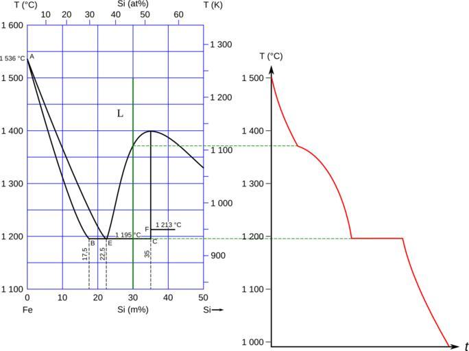 Keywords: Diagramme binaire Fe Si analyse thermique 30.svg en Iron-silicon binary phase diagram and thermal analysis curve for an alloy with 30 wt Si fr Diagramme binaire fer-silicium et courbe d'analyse thermique pour un alliage à 30 m de Si own Cdang 2010-09-21 inkscape Binary phase diagrams of iron Silicon diagrams Thermal analysis curves |