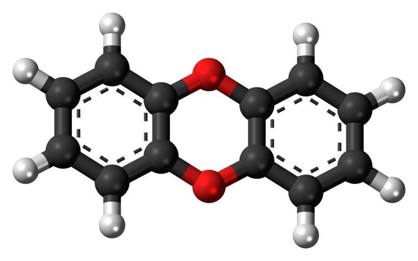 Keywords: Dibenzo-1,4-dioxin-3D-balls.png Ball-and-stick model of the dibenzo-1 4-dioxin molecule the parent compound of the dioxins chemical series Colour code 505050 Carbon C black<br> F0F0F0 Hydrogen H white<br> F51E1E Oxygen O red<br> 2011-02-06 own DS Visualizer Jynto talk Space-filling version cc-zero Dibenzo-p-dioxin Images by Jynto Ball-and-stick models |