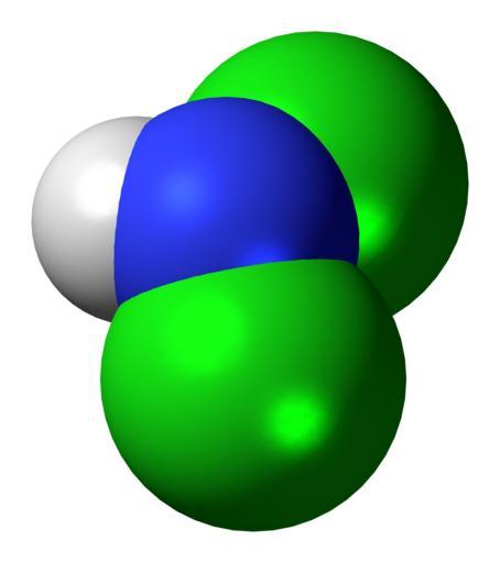 Keywords: Dichloramine-3D-spacefill.png Space-filling model of the dichloramine molecule a reactive inorganic compound Colour code F0F0F0 Hydrogen H white<br> 3C50FA Nitrogen N blue<br> 14F014 Chlorine Cl green<br> 2011-05-31 own DS Visualizer Jynto talk Ball-and-stick version cc-zero Dichloramine Images by Jynto Space-filling models |