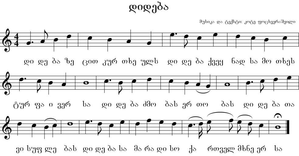 Keywords: Dideba.gif ka საქართველ ს სახელმწიფ ჰიმ ი 1918 1921 და 1991 2004 წლებში ავტ რი კ ტე ფ ცხვერაშვილი 1889-1959 en National anthem of Georgia from 1918 to 1920 and from 14 November 1990 to 23 April 2004 composed by Kote Potskhverashvili 1889-1959 Own Rastrelli F 09 13 25 November 2008 UTC Dideba |