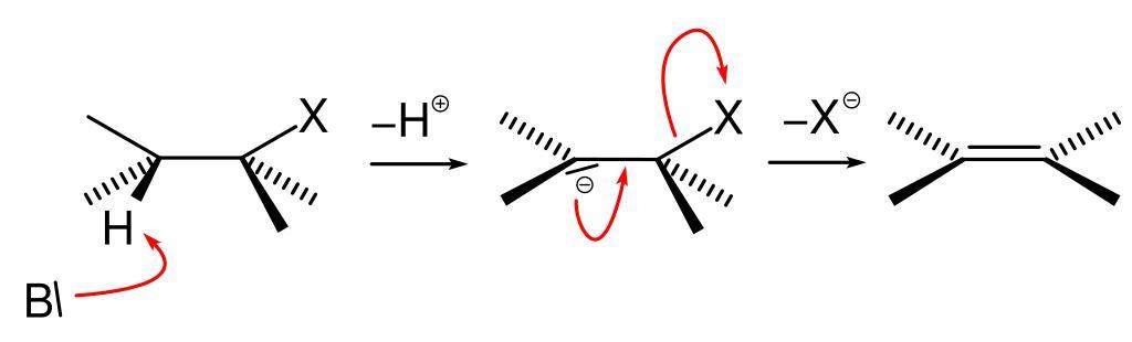 Keywords: E1cb-mechanism.svg en Mechanism of a E1cb reaction in organic chemistry de Mechanismus einer E1cb-Reaktion in der organischen Chemie own Matthias M 2009-10-15 Elimination reactions