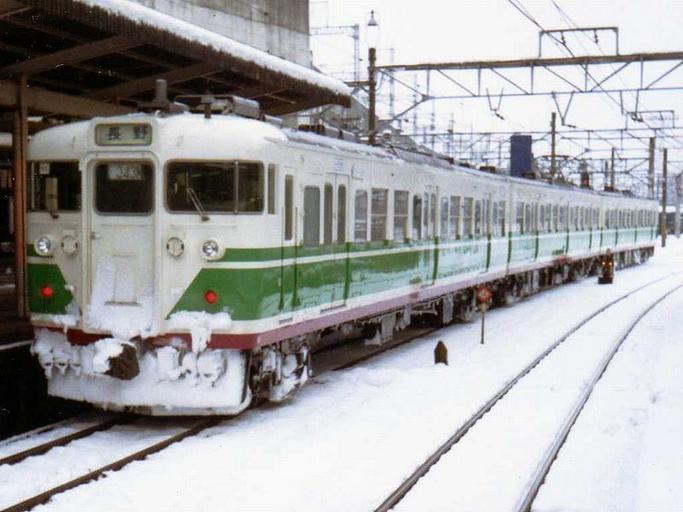 Keywords: EC-115-1000-Nagano.jpg East Japan Railway Company EMU Type 115 Original color of Nagano Branch at Takasaki Sta Photo by Cassiopeia_sweet ca 1991 Cassiopeia_sweet 1991 in rail transport in Japan JNR 115 JR East Takasaki Station