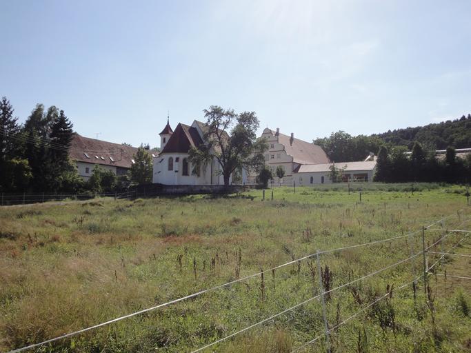 Keywords: Eggelhof Nordost.JPG en Eggelhof in Langweid de Das Ensemble Eggelhof in Langweid umfasst den schon im 12 Jahrhundert genannten später im Besitz des Augsburger Domkapitels befindlichen Gutshof Er war bis zum 16 Jahrhundert Sitz eines domkapitelischen Amtes und befindet sich am Rande des Schmuttertales in eindrucksvoller Lage; die Baugruppe besitzt eine große Fernwirkung Der nach Osten geöffnete dreiseitige Hof besteht aus dem stattlichen zweigeschossigen um 1730 entstandenen und durch einen lebhaft geschweiften Spätbarockgiebel ausgezeichneten Gutshaus aus einem weiteren stattlichen Wohngebäude mit Satteldach und einem Wirtschaftsgebäude Die große Hofkapelle zur Schmerzhaften Muttergottes östlich vor dem Gutshaus gelegen und das Ensemble beherrschend erhebt sich über den Resten romanischer und vielleicht auch eines römischen Gebäudes; ihrem spätgotischen Chor fügte Joseph Meitinger 1765 ein barockes Langhaus an Weiterführende Informationen unter http //www der-eggelhof de www der-eggelhof de own Jkü 2012-07-23 48 495301 10 820165 E-7-72-171-1 Cultural heritage monuments in Langweid am Lech Gut Eggelhof Cc-zero |