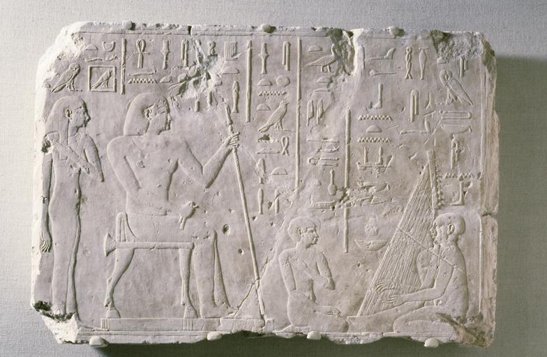 Keywords: Egyptian - Ankh-ef-en-Sekhmet Entertained by a Harpist - Walters 2238.jpg Late Period interest in the past is clearly demonstrated in this work whose composition clothing and poses all recall Old Kingdom and Middle Kingdom works Details such as the crisp precision of the carving and the presence of personal names date the piece to the Late Period It shows its owners Ankh-ef-en-Sekhmet and his wife Hathor-em-hat to the viewer's left Their daughter with close-cropped hair kneels at center The three are entertained by a harpist named Psamtik-seneb who plays the harp for the good of their spirits everyday The harpist's name means may King Psamtik be healthy The tomb from which this relief came was located in Saqqara the necropolis cemetery of Memphis an important center for the worship of the goddesses Sekhmet and Hathor whose names are incorporated into the tomb owners' names ca 550 525 BC Late Period carved limestone traces of red paint cm 44 65 accession number 22 38 34069 Khawam Brothers Cairo prior to 1930 Dikran Kelekian New York and Paris by purchase Henry Walters city Baltimore Walters Art Museum Henry Walters Acquired by Henry Walters 1931 Inscriptions above each of the figures identify the person depicted Translation Priest of Sekhmet of the Acacia Tree Priest of Ptah Ankh-ef-en-Sekhmet his wife Hathor-em-hat his beloved daughter Ta- net -Nefertem and the harpist and singer Psamtik-seneb who is plucking the harp for your i e Ankh-ef-en-Sekhmet's Ka life force everyday place of origin Egypt Walters Art Museum license Ancient Egyptian reliefs in the Walters Art Museum Harps in ancient Egypt Ancient Egyptian art from Memphis Sekhem sceptre hieroglyph Well hieroglyph Slay symbol hieroglyph Shen loop hieroglyph Launderer's club hieroglyph Reliefs of the 26th dynasty of Egypt Psamtikseneb Old age in Ancient Egypt Ankh-ef-en-sekhmet |