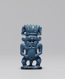 Keywords: Egyptian - Bes - Walters 481604.jpg This dwarf-like protective deity was very popular in ancient Egypt Bes is represented with the nude body of a dwarf grotesque facial features and the ears and mane of a lion He wears a tall feather-crown and usually rests his hands on his hips Known from as early as the Middle Kingdom ca 2000 BC Bes was venerated as a protector of the home family and childbirth and for that reason figures prominently in domestic magic and amulets His close connection to all aspects of fertility and sexuality is demonstrated by the presence of his image in the Birth-houses -shrines associated with temples of the Late and Greco-Roman periods He also had a special relation to the goddess Hathor and performed in her retinue as a musician and dancer This amulet of Bes is a variant of the standard type representing the god with a protruding tongue and with uraei cobra serpents crowned by sun-disks which flank his feathered crown A rectangular base and a loop behind the head complete the pendant ca 950 700 BC Third Intermediate Egyptian faience with dark blue glaze cm 3 75 3 46 0 15 accession number 48 1604 4631 Henry Walters Baltimore date and mode of acquisition unknown Walters Art Museum Henry Walters Acquired by Henry Walters place of origin Egypt Walters Art Museum license Ancient Egyptian amulets in the Walters Art Museum Ancient Egyptian faience in the Walters Art Museum Bes amulet |