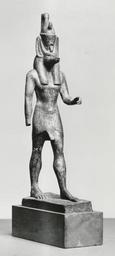 Keywords: Egyptian - Standing Anubis - Walters 54552 - Three Quarter.jpg This statuette of Anubis god of embalming represents him striding wearing a long wig that covers the transition between his human body and jackal head As a son of Osiris he wears the double crown of Upper and Lower Egypt between 664 342 BC Late Period bronze glass or stone cm 24 9 6 2 10 accession number 54 552 32133 Khawam from Mitrahina Henry Walters city Baltimore Walters Art Museum Henry Walters Acquired by Henry Walters 1930 Mummified The Walters Art Museum Baltimore 2008-2013 place of origin Egypt Walters Art Museum license Ancient Egyptian statues in the Walters Art Museum Statues of Anubis Statues of the Egyptian late period |