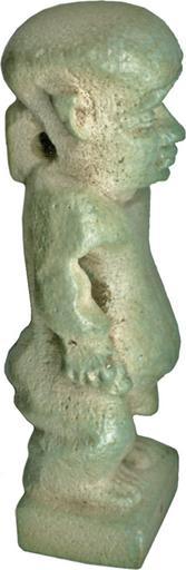 Keywords: Egyptian - Standing Pataikos - Walters 481614 - Right.jpg This dwarf-like protective deity was very popular in ancient Egypt; amulets in the shape of this god were particularly popular from the Third Intermediate period The Greek name Pataikos comes from a passage in the writings of Herodotus ca 5th century BC who used this term to describe a Phoenician protective dwarf-like image The Egyptian Pataikos is a special manifestation of the creator god Ptah and the dwarf-like appearance symbolizes his magical power This amulet presents the standard type of Pataikos as a standing nude dwarf with his clenched hands at his sides and a large dominating head late 4th-3rd century BC Greco-Roman Egyptian faience with green glaze cm 4 4 1 6 1 15 accession number 48 1614 30653 Maurice Nahman Cairo Henry Walters city Baltimore Walters Art Museum Henry Walters Acquired by Henry Walters 1930 Daily Magic in Ancient Egypt The Walters Art Museum Baltimore 2006-2007 place of origin Egypt Walters Art Museum license Ancient Egyptian amulets in the Walters Art Museum Ancient Egyptian faience in the Walters Art Museum Pataikos |