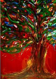 Keywords: Muchas leyendas hablan de un Árbol de la Vida, que crece sobre la tierra y da vida a dioses y a seres humanos. Se habla de un Árbol del Mundo, a menudo vinculado a un "centro" de la Tierra. Es probablemente el mito humano más antiguo, y tal vez un mito universal. Además, lo común es considerar que tal árbol (cósmico si así se le entendiese) tiene sus raíces en el mundo inferior y sus ramas en lo más alto del firmamento. Por lo que se ha considerado siempre como natural y sobrenatural al mismo tiempo, es decir, perteneciente a la tierra pero de algún modo no de la tierra misma. Entrar en contacto con este árbol (ya sea alcanzándole para vivir en o sobre él), suele significar regeneración o renacimiento de un individuo. Sus hojas son explosión de colores y destellos que viajan a velocidad estelar. Tiene la firmeza de la realidad en sus raíces y la fuerza titánica de la razón que le mantiene en pie, atraviesa en vertical conciente y subconciente, mientras sus ramas tocando el cielo, describen movimientos que flanquean el inexorable avance de la línea secuencial que martiriza el corazón, y la indeleble huella de la memoria en cual se funda, agitándose entre ideas y visiones del pasado, el presente y el futuro. |