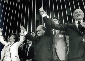 Keywords: colégio eleitoral colégioeleitoral eleição indireta eleiçãoindireta tancredo neves tancredoneves ulysses guimarães ulyssesguimarães dona risoleta donarisoleta presidente da república presidentedarepública brasília df brasil bra people Tancredo, entre Ulysses Guimarães e dona Risoleta, após eleição indireta para Presidente da República, Colégio Eleitoral, plenário da Câmara dos Deputados. Na véspera da posse, em 14 de março, Tancredo seria internado e Sarney, o vice, assumiria o cargo. Depois de sete cirurgias, Tancredo Neves morreu no dia 21 de abril em São Paulo. Data: 15/01/1985. Foto: Célio Azevedo Tancredo, entre Ulysses Guimarães e dona Risoleta, após eleição indireta para Presidente da República, Colégio Eleitoral, plenário da Câmara dos Deputados. Na véspera da posse, em 14 de março, Tancredo seria internado e Sarney, o vice, assumiria o cargo. Depois de sete cirurgias, Tancredo Neves morreu no dia 21 de abril em São Paulo. Data: 15/01/1985. Foto: Célio Azevedo |