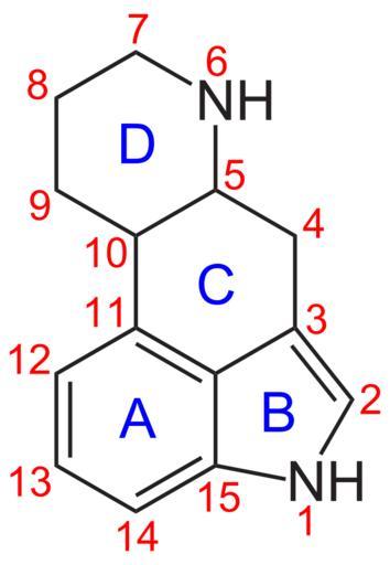 Keywords: Ergolin num ABCD.svg Struktur von Ergolin nummeriert Ringe beschriftet Structure of ergoline numbered rings labelled own 2007-04-07 NEUROtiker Own work all rights released Public domain de einfach nummeriert nummeriert und Ringe beschriftet<br />en plain numbered numbered and rings labelled Ergoline |