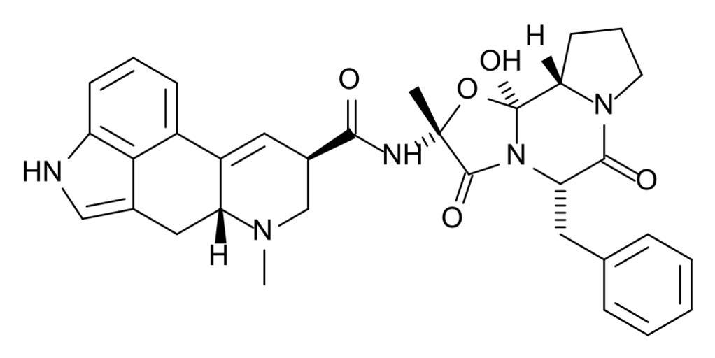 Keywords: Ergotamine.svg chemical structure of Ergotamine own using BKchem 2007-05- User Bryan Derksen Ergotamine