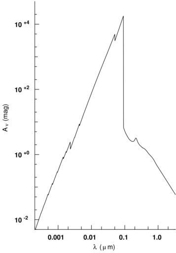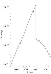 Keywords: Extinction-law.svg en Standard extinction law for wavelengths ranging from 0 2 nanometers X rays to 3 microns infrared In the X ray regime shortwards of the helium ionaisation analytical fits by Morrisson McCammon 1983 are used Between the helium ionisation and the Lyman limit extreme UV a analytical fit of mine to a plot by Ryter 1996 is used At optical wavelengths from the Lyman limit longwards analytical fits by Cardelli et al 1989 for RV 3 1 are used own Loqueelvientoajuarez 2010-01-26 Astronomical models |