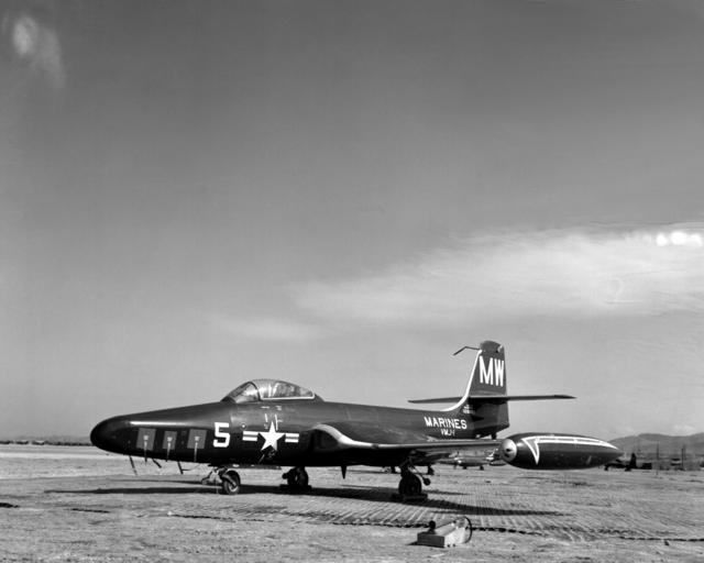 Keywords: F2H-2P VMJ-1 Korea1953.jpeg en A U S Marine Corps McDonnell F2H-2P Banshee photographic aircraft BuNo 128881 used by Marine photographic squadron VMJ-1 1st Marine Aircraft Wing after photographing enemy installations around the Yalu River in Korea on 15 May 1953 Another F2H-2P and a Grumman F7F Tigercat are parked in the background http //www defenseimagery mil U S DefenseImagery photo VIRIN http //www defenseimagery mil/imagery html guid bce827d6e408d99b2cf395978d44460c40fb1271 127-GK-1-A349272 photographer TSgt Tom Rousseau USMC 1953-05-15 PD-USGov Aircraft of the United States Marine Corps McDonnell F2H-2P Banshee Military aircraft in the Korean War Black and white photographs of aircraft |