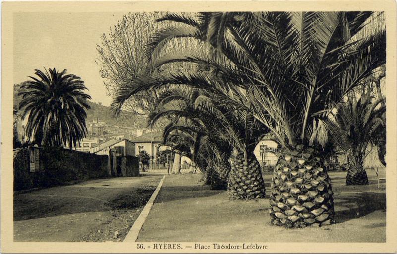 Keywords: F83PlaceLefevre1ereMoitierXXe-HueEditeurHyeresN°56-9X14.1.JPG fr Carte postale d'Hyères début XXe siècle - Vue de la Place Théodore-Lefebvre avec plantation de jeunes palmiers des Canaries - Inscrit sous l'image 56 - HYERES - Place Théodore-Lefebvre 2014-09-13 14 34 10 document d'époque photographié dans collection particulière anonymous 43 116707 6 130945 Mention au verso Hue éditeur - Hyères PD-Art Uploaded with UploadWizard Postcards of Hyères Historical images of Var Arecaceae historical images Arecaceae in France Arecaceae in Provence-Alpes-Côte d'Azur Phoenix canariensis |
