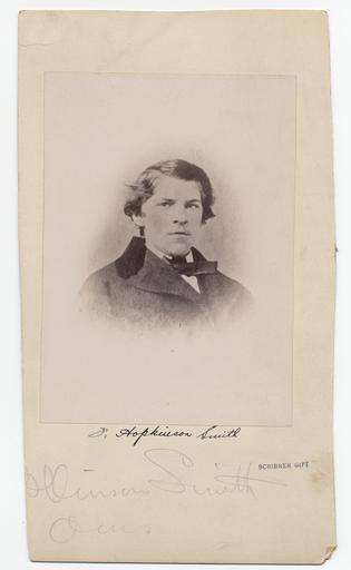 MAKE A MEME View Large Image Portrait of Smith as a young man. Identification on front (handwritten): F. Hopkinson Smith. Creator/Photographer: Unidentified photographer Medium: Black and white photographic print Dimensions: 15 cm x 11 cm Date: c. 1860 Collection: ...