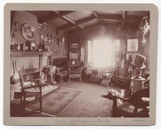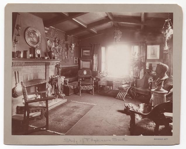 Keywords: smithsonian institution smithsonianinstitution study room studyroom historical pieces historicalpieces mantle exposed beam cieling exposedbeamcieling archives of american art archivesofamericanart indoor monochrome Description: Smith's study. Identification on front (handwritten): Study of F. Hopkinson Smith. Smith, Francis Hopkinson, 1838-1915 Creator/Photographer: Unidentified photographer Medium: Black and white photographic print Dimensions: 19 cm x 25 cm Date: c. 1900 Persistent URL: www.aaa.si.edu/collections/images/detail/f-hopkinson-smit... Repository: Archives of American Art Collection: Charles Scribner's Sons Art Reference Department Records, c. 1865-1957 Accession number: aaa_charscrs_4383 Description: Smith's study. Identification on front (handwritten): Study of F. Hopkinson Smith. Smith, Francis Hopkinson, 1838-1915 Creator/Photographer: Unidentified photographer Medium: Black and white photographic print Dimensions: 19 cm x 25 cm Date: c. 1900 Persistent URL: www.aaa.si.edu/collections/images/detail/f-hopkinson-smit... Repository: Archives of American Art Collection: Charles Scribner's Sons Art Reference Department Records, c. 1865-1957 Accession number: aaa_charscrs_4383 |